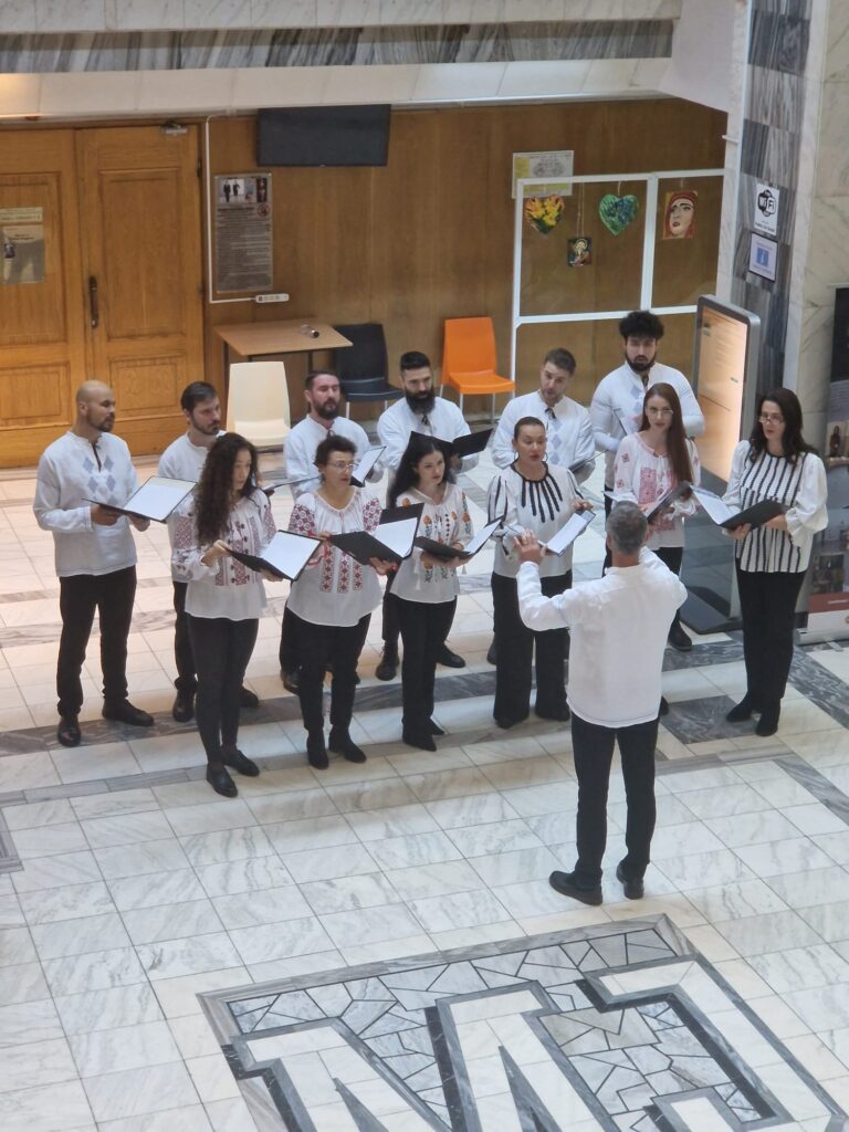 În sala obișnuită cu dosare și pași grăbiți s-a simțit ecoul colindelor, aduse cu har de voci angelice, care au vestit Nașterea Domnului și au umplut inimile cu bucurie sfântă. Colindele interpretate de Corul Teatrului Muzical „Nae Leonard” din Galaţi au topit orice grijă, amintindu-ne tuturor de esența blândă a acestei perioade.